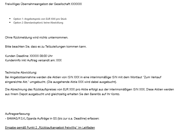 wir möchten Sie über folgende Kapitalmaßnahme informieren.