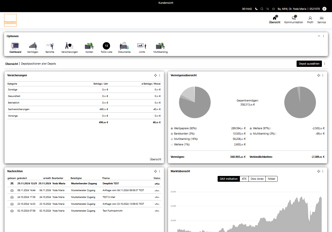 Durch die Aktivierung des Layouts „Kontrast“ werden sowohl die Kontraste deutlich stärker als auch die Farbgebung im Kundenzugang FinanceCloud & FinanzAdminApp auf ein Minimum reduziert.