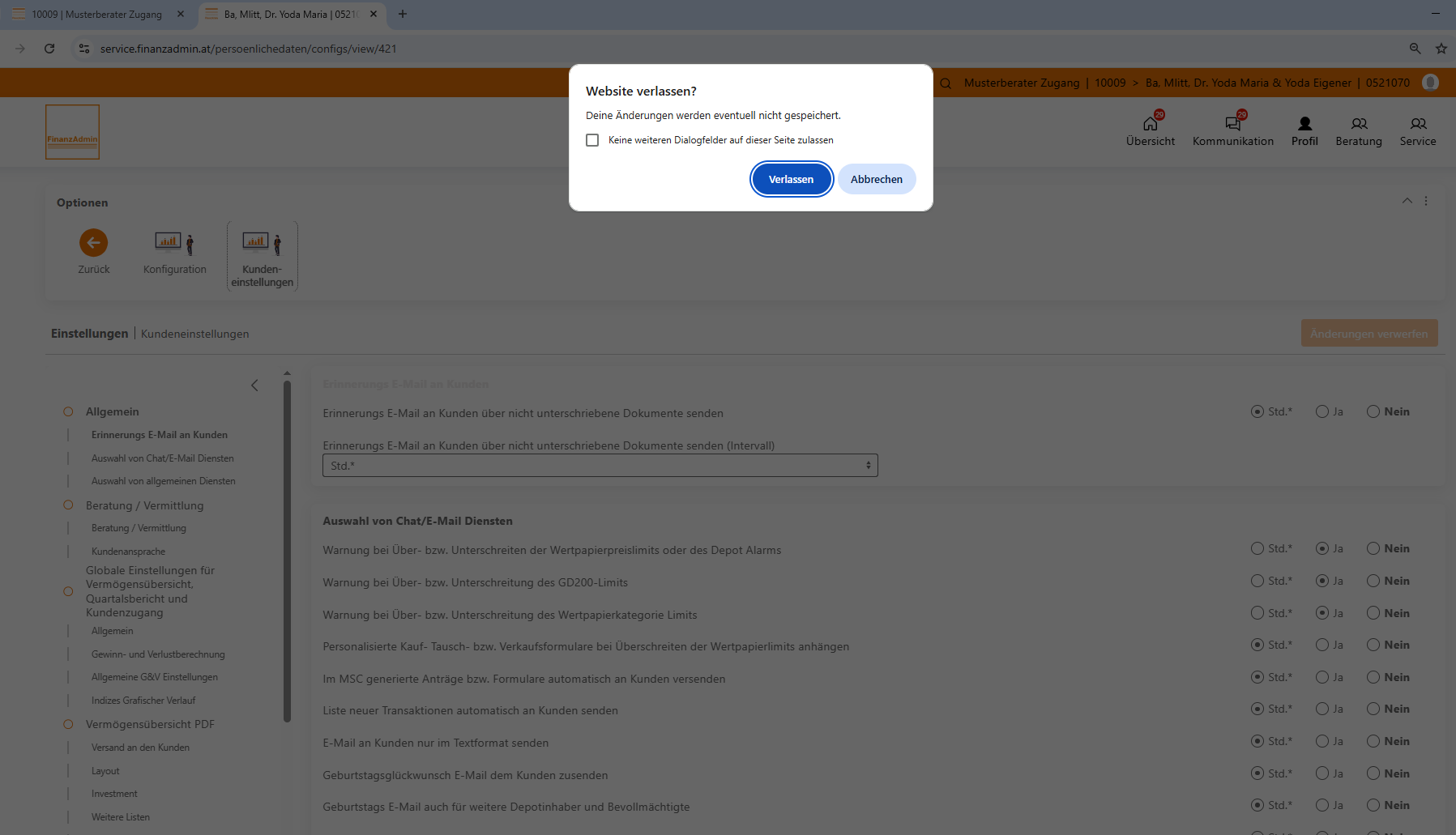 Diese Funktion wurde als Teil unserer kontinuierlichen Verbesserungsmaßnahmen implementiert und soll helfen, versehentliche Sitzungsabbrüche zu vermeiden, insbesondere wenn Arbeiten noch nicht abgeschlossen oder Daten nicht gespeichert wurden.