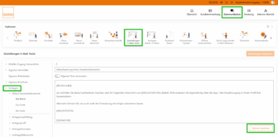 Ab sofort steht Ihnen eine praktische Erweiterung in den Einstellungen der E-Mail-Texte zur Verfügung: